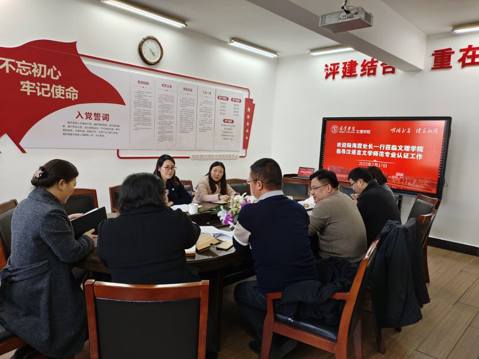 为全面做好汉语言文学师范专业认证专家进校考查相关工作,2023年2月17日下午,教务处副处长(主持工作)陆海霞教授赴文理学院召开汉语言文学师范专业认证工作推进会,现场调研汉语言文学师范专业认证工作开展情况。推进会由文理学院党委副书记(主持工作)嵇会祥同志主持。