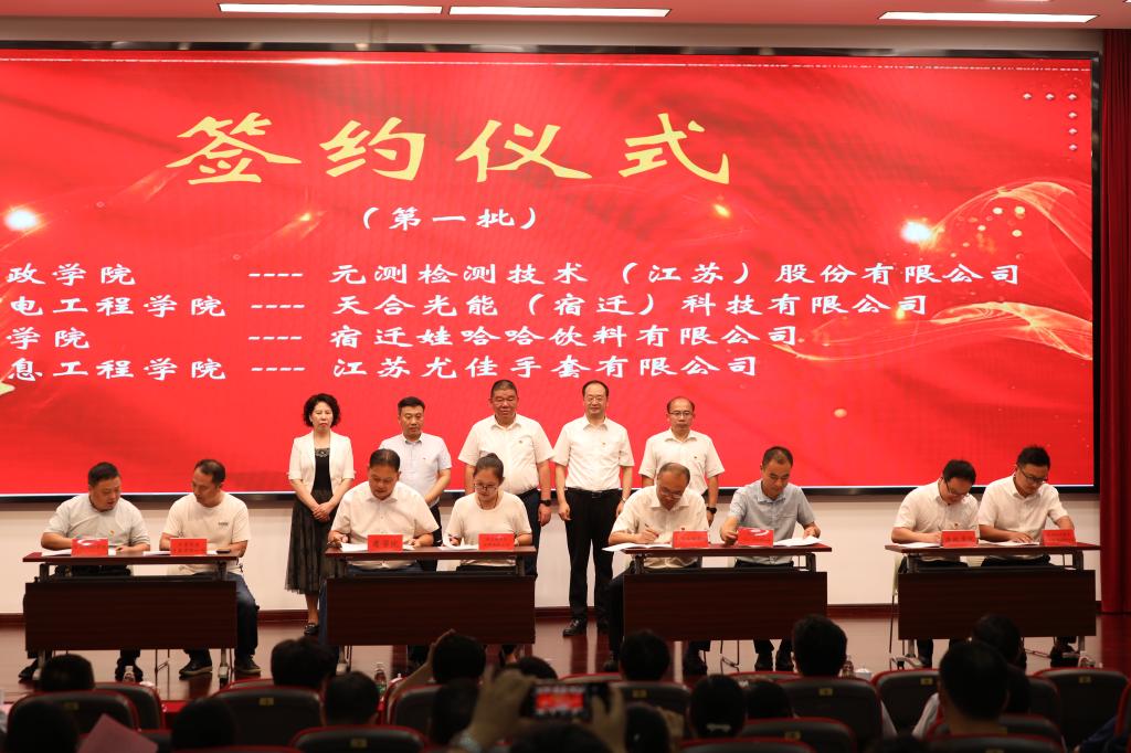 7月8日下午,宿迁学院-宿迁经济技术开发区2021年产学研合作对接活动暨集中签约仪式在我校老图报告厅举行,我校新增24家合作单位。校党委书记,宿迁市委常委、宿迁经开区党工委书记张昊,副校长季赛,宿迁经开区副主任徐松、宿迁市科技局三级调研员高海燕出席活动。副校长潘志明主持仪式。