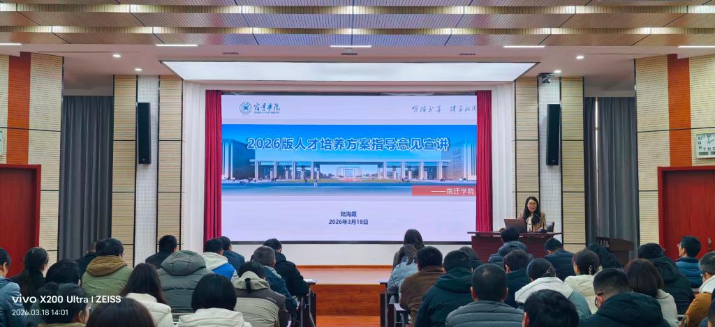 陆海霞围绕《宿迁学院本科专业人才培养方案修订指导意见(2026版)》的核心内容作了深入解读,系统阐述了修订工作的指导思想、基本原则、主要变化及具体要求。她强调,本次修订要紧密对接国家战略与区域经济社会发展需求,突出“两减两实两强化”,即减总学分、总学时,做实产教融合、实践教学,加强数智化、国际化,推动人才培养模式创新与课程体系优化。她要求,各学院要高度重视本次人才培养方案修订工作,严格遵循指导意见相关要求,加强组织协调,广泛听取意见,按时完成修订各项工作。