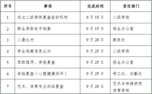 1. 二级学院成立新生入学资格复查工作组,制定工作方案,9月16日前将方案报送教务处备案。