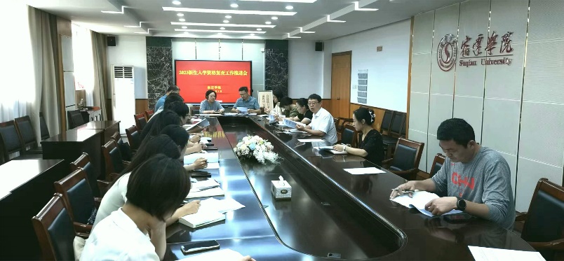 为切实做好2023级新生入学资格复查工作,根据江苏省教育厅办公室《省教育厅办公室关于做好 2023 年普通高校新生入学资格复查和学籍电子注册工作的通知》(苏教办学函〔202317号)文件精神要求和我校98日《关于做好2023年本科新生入学资格复查工作的通知》的要求,915日上午9时,在行政楼二楼会议室召开2023年新生入学资格复查推进会。教务处副处长石鲁生出席会议,教务处教务科、综合科及各二级学院教务老师和辅导员老师参加会议。