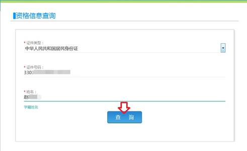 同意报名协议后进入资格信息查询界面,输入本人身份证号码,点击“查询”。