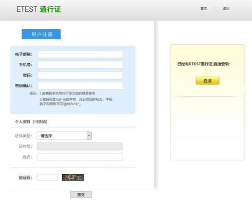 一、注册ETEST通行证