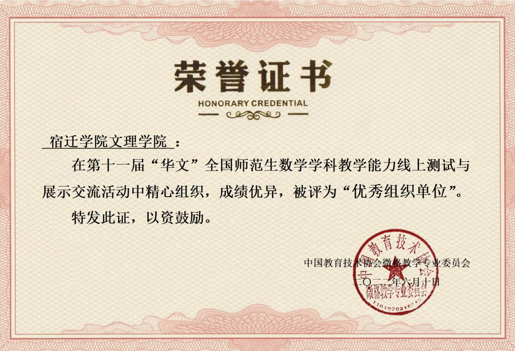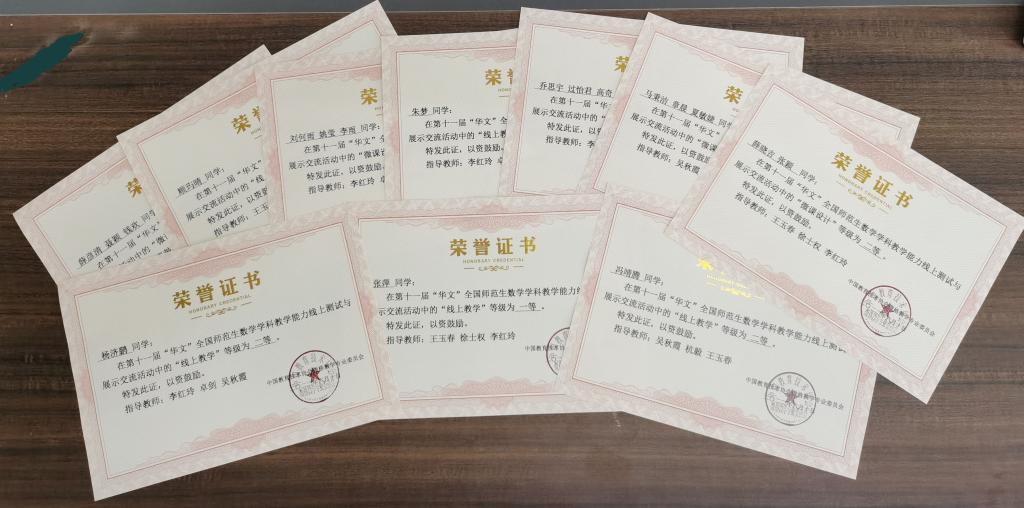 近日,第十一届“华文”全国师范生数学学科教学能力比赛结果揭晓,文理学院数学与应用数学(师范)专业学子表现出色,共获奖10项,19名同学获奖。其中“数学微课设计能力(集体)”组获全国二等奖1组、三等奖4组;“线上数学教学能力测试(个人)”获全国一等奖1名、二等奖4名,创下数学师范专业专业参加该赛事以来的最好成绩,同时我校也被赛事评为“优秀组织单位”。