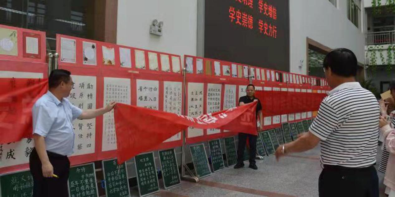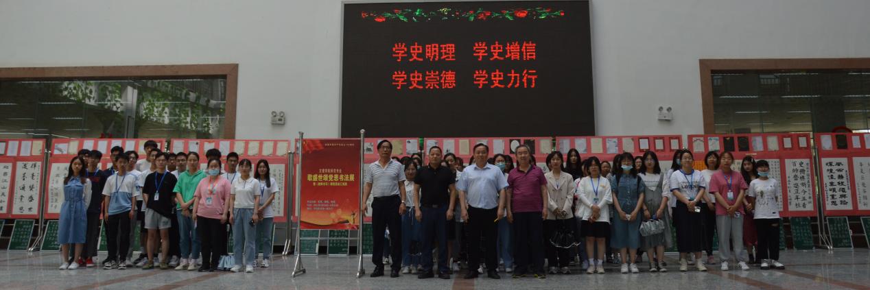 为庆祝中国共产党百年华诞,2021年5月28日,“文理学院师范生歌盛世颂党恩书法展”在校图书馆一楼大厅隆重开幕。文理学院吉益民副院长、教育系杨传达主任、书法教师孙红林及120名学生代表参加了当天的揭幕仪式。展期到2021年6月15日结束。