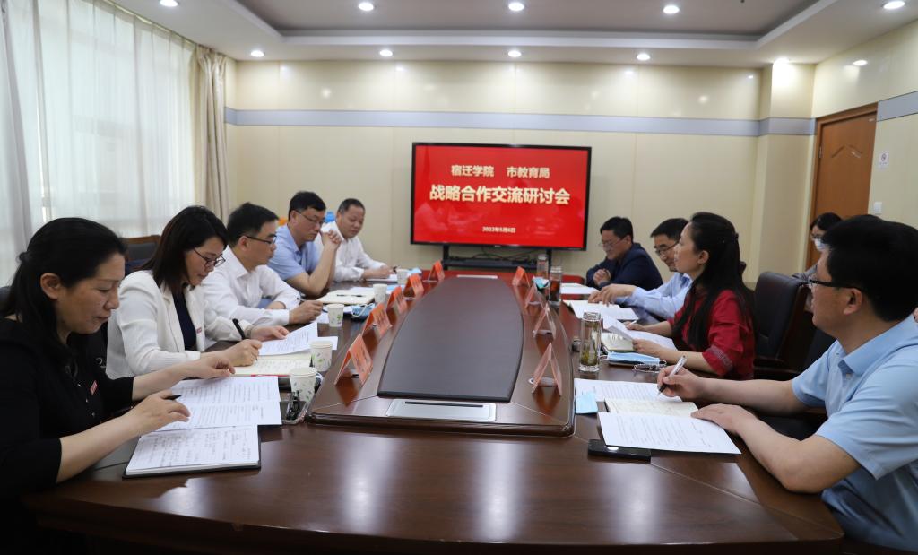 5月6日上午,我校与宿迁市教育局在市教育局六楼会议室举行战略合作交流研讨会。副校长潘志明、校纪委书记刘立新,宿迁市教育局局长倪成城、副局长龚显梅出席会议。刘立新书记主持会议。