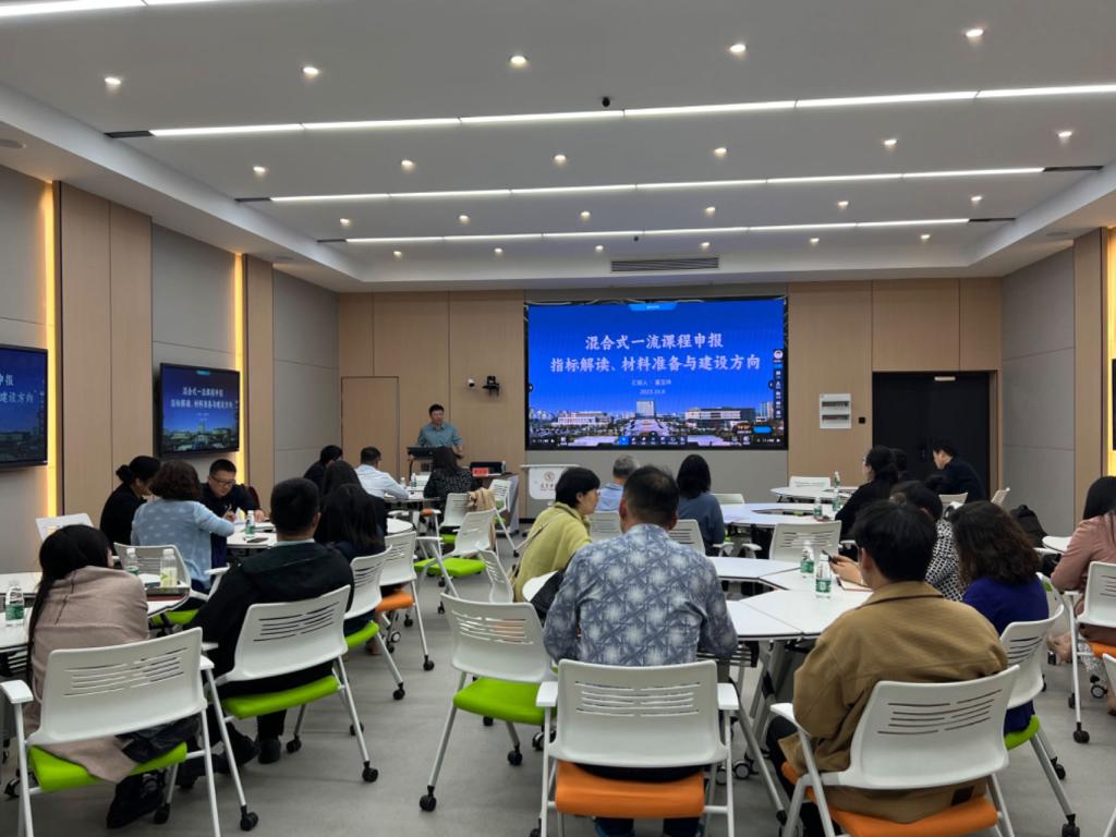 为提高我校省级以上一流课程申报质量,10月8日下午,教务处在1号楼智慧教室举办省级以上一流课程申报培训会。此次会议特别邀请徐州工程学院董玉玮教授作专题报告。我校拟申报2023年省级以上一流课程负责人及团队成员等30余人参培,会议由教务处/教师教学发展中心副处长王凤侠主持。