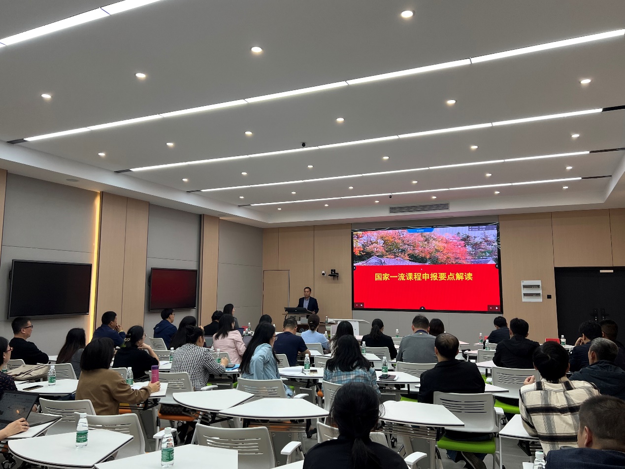 为提高我校一流课程建设和高质量课程申报,10月14日下午,教务处在1号楼智慧教室举办一流课程建设经验分享与交流会。此次会议特别邀请苏州大学周生杰教授作专题报告。宿迁学院副校长郭照冰出席本次培训会。会议由教务处/教师教学发展中心副处长王凤侠主持,我校拟申报2023年省级以上一流课程负责人及团队成员、校级一流课程负责人等50余人参加。