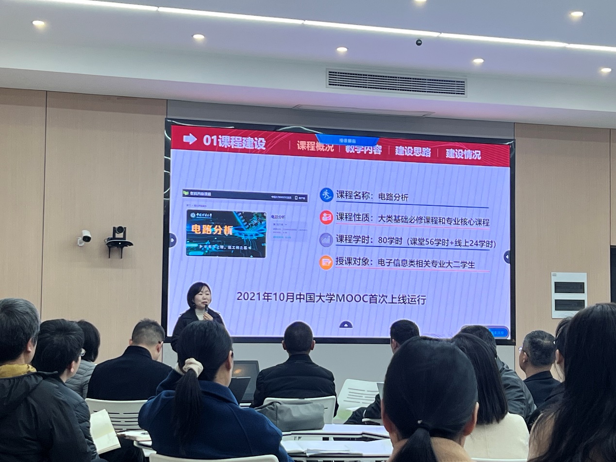 第一部分,周老师以“基于知识图谱的《电路分析》课程建设与实践”为题,介绍了该门课程的课程概括、教学内容和建设思路等建设情况。周老师结合课程实际运行中遇到的情况,详细讲解了如何利用AI工具实现教学目标拆解、个性化学习路径规划及跨学科项目设计。她强调,AI不是替代教师,而是通过数据分析与智能决策,让教师更专注于个性化指导与高阶思维培养。
