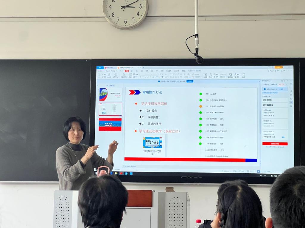 培训邀请信息工程学院副教授王海燕老师主讲。王老师结合课堂使用智慧教室的经典应用案例,现场演示了文件操作、视频操作、白板、系统切换、投屏等核心功能,并结合真实课堂场景,重点讲解动态批注及互动工具的使用技巧,帮助教师掌握新型教学工具技能,提升信息化教学水平。在交流环节,老师们积极提问,就投屏、板书保存等教学痛点展开深度探讨。