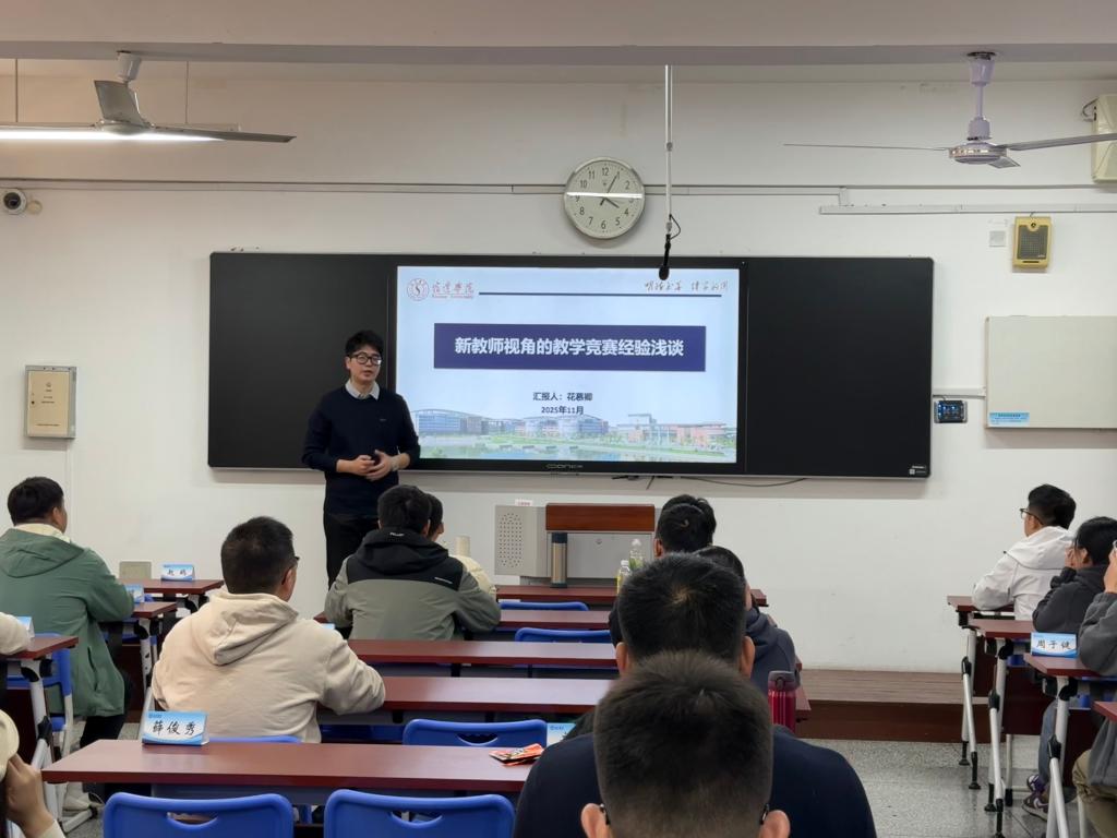 曹羽围绕“超星平台应用、智慧课程建设”,系统讲解了课程创建、资源上传、在线互动等建课与教学管理功能,并通过案例演示和现场答疑,帮助教师更好地运用平台优化教学效果。靳淑梅教授以“教学设计与实施”为主题,从目标设计、内容设计、实施设计、评价设计、教学反思等多个维度,系统阐述了完整教案的构建方法与教学策略选择。花慕卿老师以“新教师视角的教学竞赛经验浅谈”为主题,结合个人参赛经历,深入剖析了参与教学竞赛的意义与备赛策略。唐友亮教授围绕“高等教育教学改革研究项目申报与实践”,系统讲解了教改课题的选题方向、改革重点与申报技巧。结合实际案例,他详细阐述了教改课题申报的全流程,并强调申报材料应逻辑严密、支撑有力、设计规范,切实提升课题申报质量。