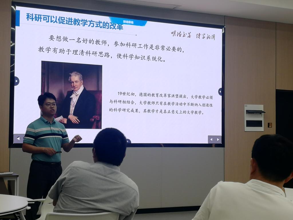 朱老师介绍了自己对科研与教学关系的思考,并结合个人经历阐述了科研及工作经历与课堂融合促进教学效果提升的思路和做法,最后通过一系列数据和教学实例展示了科研反哺教学在促进学生本科阶段学习效果提升中发挥的显著成效。